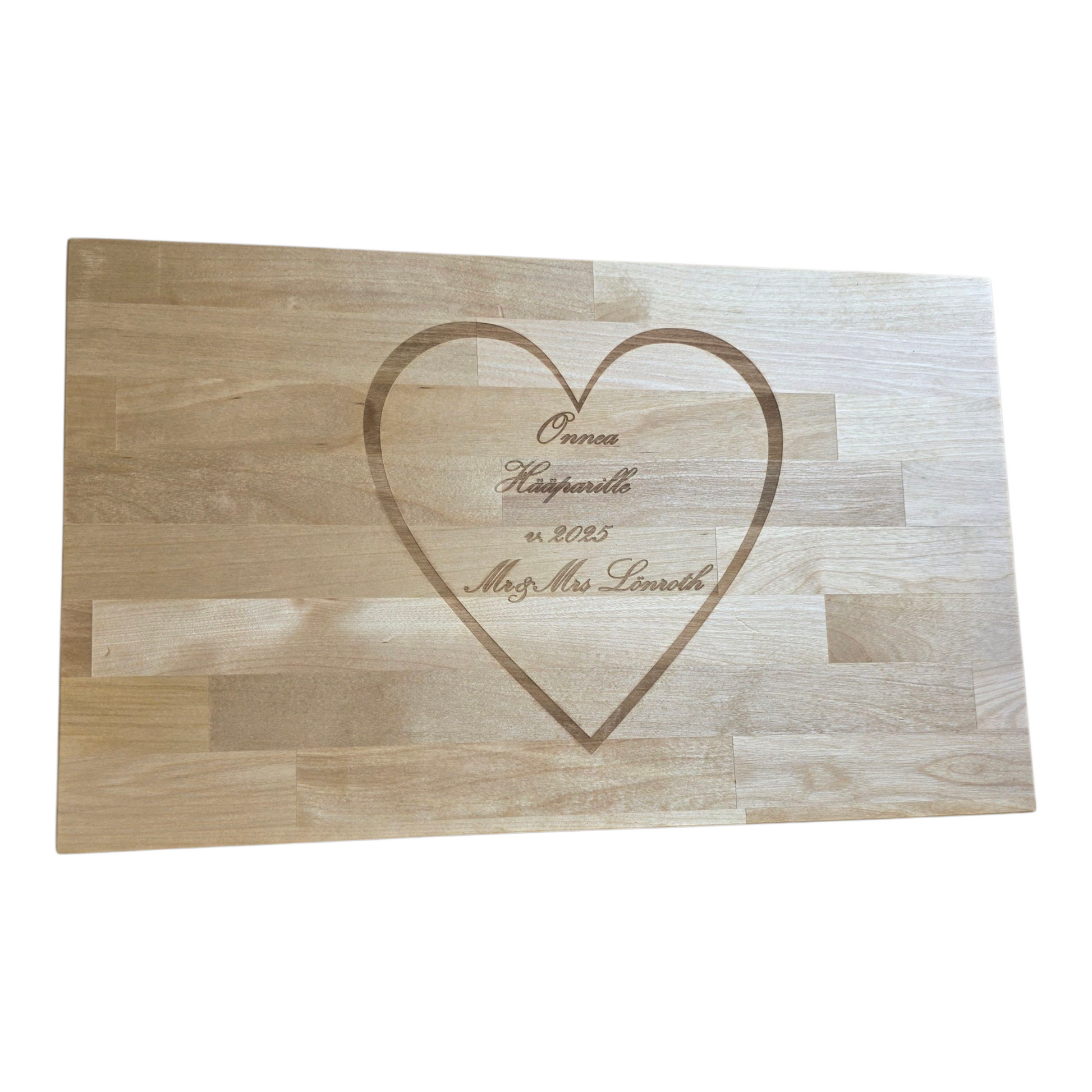 Koivusta valmistetut kauniit leikkuulaudat itselle tai lahjaksi. Mikä olisikaan paras lahja saada kuin oma tärkeä päivä ikuistettuna nimellä ja päivämäärällä. Häät, valmistujaiset, rippijuhlat jne. Tuote käsitelty parafiiniöljyllä. Muistathan nämä yksilöidyt tuotteet, eivät sisällä palautus mahdollisuutta.