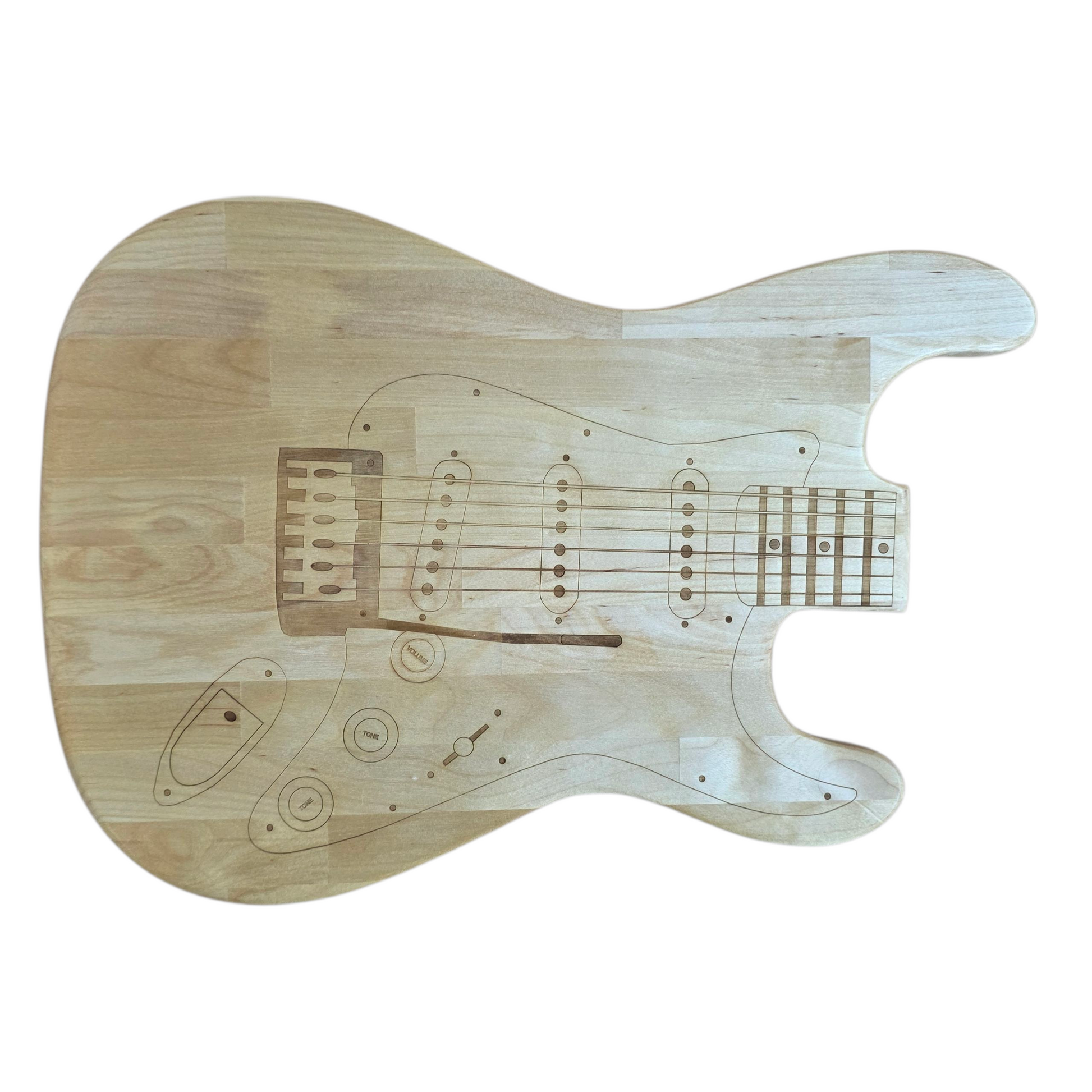 Käsityönä upea koivusta valmistettu leikkuulauta, kitaranmuoto ja ST malli laserkuviointi. Käsitelty parafiiniöljyllä. Käytännöllinen ja samalla kaunis sisutuslisä keittiöön.