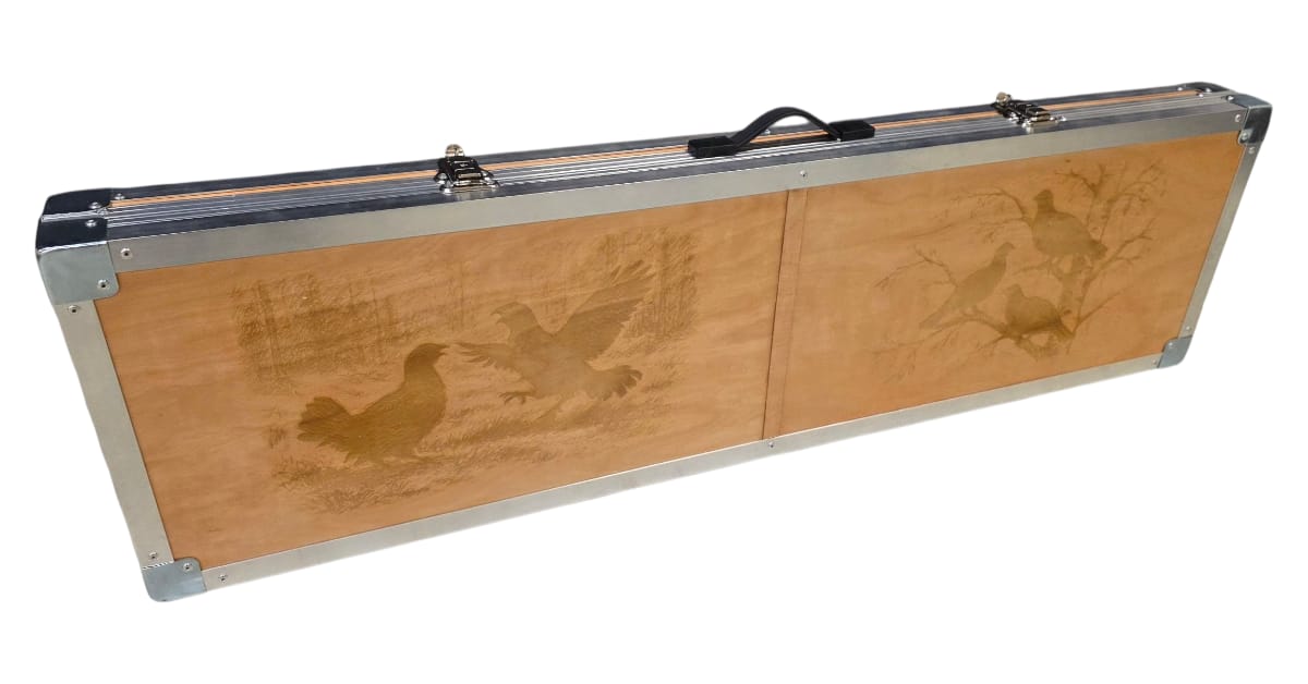 Tyylikäs säilytysratkaisu metsästäjän tarpeisiin. Valmistettu kotimaisesta koivusta, jossa laserkuvioitu etukansi eläinkuvilla.